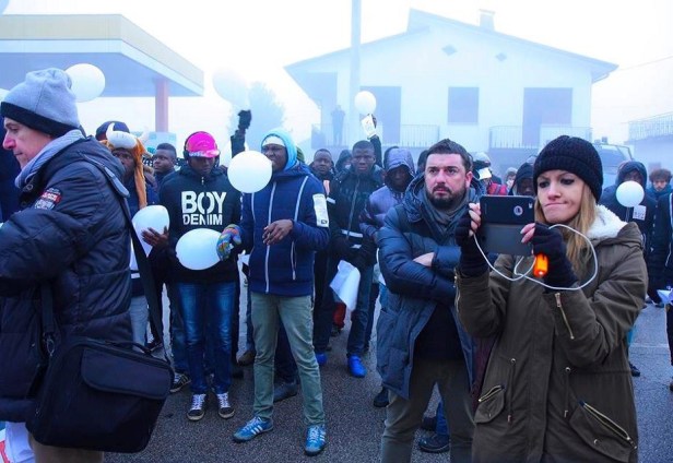 Gli immigrati del campo di accoglienza di #Conetta, sabato hanno manifestato. Per cento profughi sono stati blindati due comuni. Ristoranti, negozi e bar chiusi. Hanno riaperto alle 16.35 di un pomeriggio d’inverno quando lì fuori è già nebbia e buio pesto.