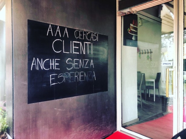 AAA cercasi clienti anche senza esperienza. Qualcuno ci aveva letto: “cercasi personale anche senza esperienza”. Ed era pure entrato, chiedendo se assumevano. E invece. E invece qui Jessica Norbiato cerca clienti. Anche senza esperienza. Allora questa notte per #Storie2020 vi voglio raccontare questa storia. Insomma no. Insomma. Insomma passo per Mirano, sono lì con la testa piena trivellata di cose da fare, di agende da seguire, di persone da chiamare, sono lì con la mente avvolta nella nebbia mentre fumo la mia sigaretta e penso a cosa fare, a come organizzarmi, quando all’improvviso non so perché alzo lo sguardo e vedo questo cartello. “AAA cercasi clienti anche senza esperienza”. Allora mi colpisce. Devo scrivere due tre cose, e mi viene in mente un post di Mariangela Semenzato che dice che quando sei in panne l’unica soluzione è il caffè, che prendo ed entro. Mi siedo. Appoggio le mie cose. Tiro fuori il computer, quando dal banco spunta una ragazza con un cappellino e una divisa. È giovane penso. Non sarà lei la titolare. Così ordino. Prendo il mio caffè americano -Quando ho più da fare, solo l’americano e la sigaretta mi salvano – accendo il computer e aspetto. Ma tempo pochi secondi, il caffè è pronto. La ragazza mi aveva chiesto se lo volessi con l’acqua a parte e io avevo risposto sì. E quando il caffè è arrivato, non avevo inteso come fosse a parte. Insomma una tazza gigantesca, da caffè americano davvero, da caffè americano vero, e sopra la tazza ci stava la teiera dell’acqua, quella da sganciare e da versare. Insomma una tazza di acqua bollente, da versare sul caffè, così lungo come piace a me. Bello. Nero. Bollente. Così non ho resistito. E vista la semplicità e la simpatia della ragazza, che c’ha gli occhi neri neri ma neri brillanti che si vede che fa un lavoro bello, ecco dicevo vista la genuinità della ragazza ho preso e gli ho chiesto. “Perché avete scritto Aaa cercasi clienti senza esperienza?”. E lei. Lei si mette a ridere. E mi fa: “ho preso spunto da un’altra parte, avevo quello spazio da riempire, e volevo qualcosa che fosse originale”. Ma dai! Le ho detto.