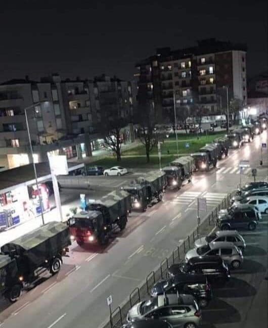 Le persone diventano morti. Le morti diventano bare. Le bare vengono messe dentro le chiese perché non ci stanno. E vengono trasportate dai mezzi militari come nei film di guerra. Perché questo è. Un lurido sporco bastardo film.