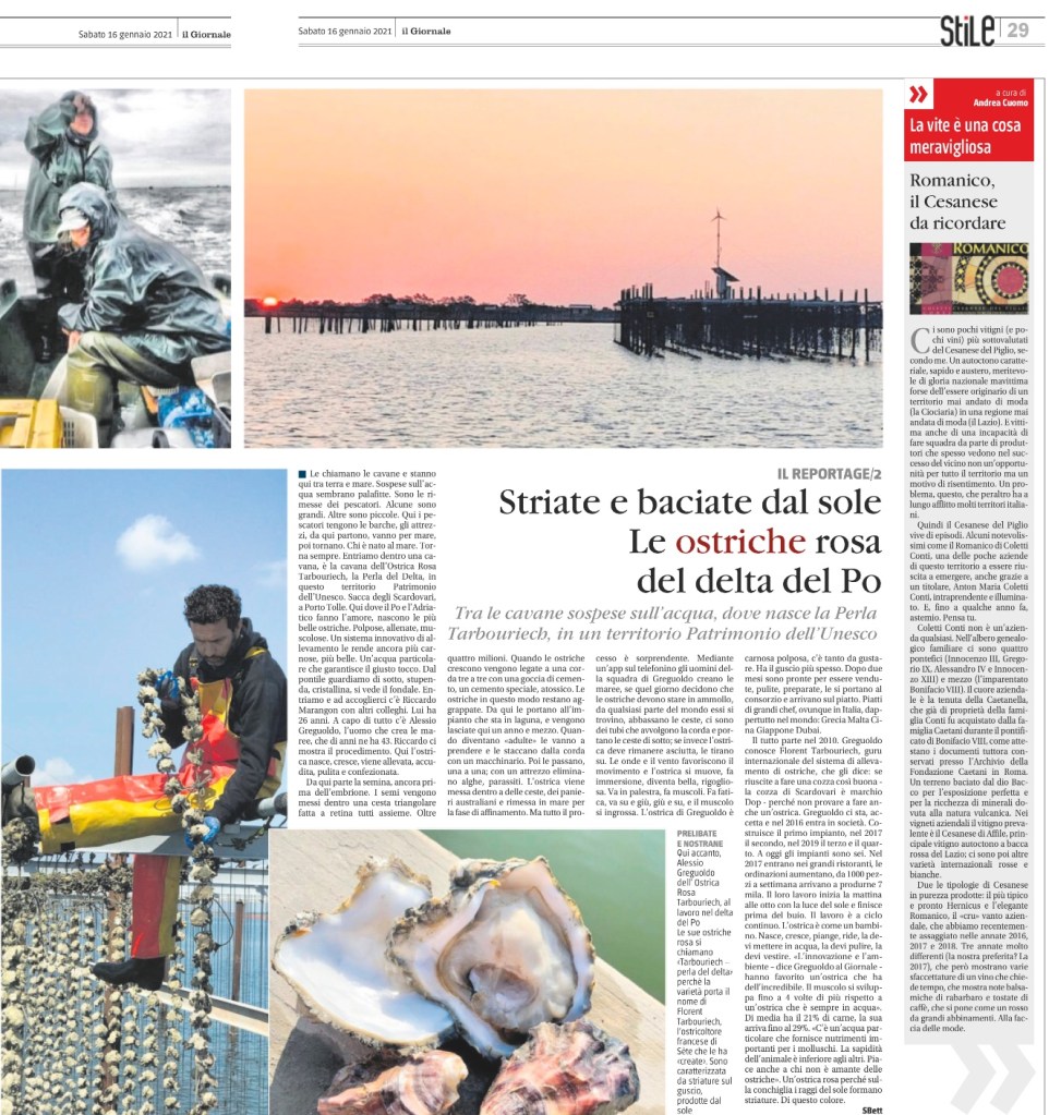 Le chiamano le cavane e stanno qui tra terra e mare. Sospese sull’acqua sembrano palafitte. Sono le rimesse dei pescatori. Alcune sono grandi. Altre sono piccole. Qui i pescatori tengono le barche, gli attrezzi, da qui partono, vanno per mare, poi tornano. Chi è nato al mare. Torna sempre. Entriamo dentro una cavana, è la cavana dell’Ostrica Rosa Tarbouriech, la Perla del Delta, in questo territorio Patrimonio dell’Unesco. Sacca degli Scardovari, a Porto Tolle. Qui dove il Po e l’Adriatico fanno l’amore, nascono le più belle ostriche. Polpose, allenate, muscolose. Un sistema innovativo di allevamento le rende ancora più carnose, più belle. Un’acqua particolare che garantisce il giusto tocco. Dal pontile guardiamo di sotto, stupenda, cristallina, si vede il fondale. Entriamo e ad accoglierci c’è Riccardo Marangon con altri colleghi. Lui ha 26 anni. A capo di tutto c’è Alessio Greguoldo, l’uomo che crea le maree, che di anni ne ha 43. Riccardo ci mostra il procedimento. Qui l’ostrica nasce, cresce, viene allevata, accudita, pulita e confezionata. Da qui parte la semina, ancora prima dell’embrione. I semi vengono messi dentro una cesta triangolare fatta a retina tutti assieme. Oltre quattro milioni. Quando le ostriche crescono vengono legate a una corda tre a tre con una goccia di cemento, un cemento speciale, atossico. Le ostriche in questo modo restano aggrappate. Da qui le portano all’impianto che sta in laguna, e vengono lasciate qui un anno e mezzo. Quando diventano “adulte” le vanno a prendere e le staccano dalla corda con un macchinario. Poi le passano, una a una; con un attrezzo eliminano alghe, parassiti. L’ostrica viene messa dentro a delle ceste, dei panieri australiani e rimessa in mare per la fase di affinamento. Ma tutto il processo è sorprendente. Mediante un’app sul telefonino gli uomini della squadra di Greguoldo creano le maree, se quel giorno decidono che le ostriche devono stare in ammollo, da qualsiasi parte del mondo essi si trovino, abbassano le ceste, ci sono dei tubi che avvolgono la corda e portano le ceste di sotto; se invece l’ostrica deve rimanere asciutta, le tirano su. Le onde e il vento favoriscono il movimento e l’ostrica si muove, fa immersione, diventa bella, rigogliosa. Va in palestra, fa muscoli. Fa fatica, va su e giù, giù e su, e il muscolo si ingrossa. L’ostrica di Greguoldo è carnosa polposa, c’è tanto da gustare. Ha il guscio più spesso. Dopo due mesi sono pronte per essere vendute, pulite, preparate, le si portano al consorzio e arrivano sul piatto. Piatti di grandi chef, ovunque in Italia, dappertutto nel mondo: Grecia Malta Cina Giappone Dubai. Il tutto parte nel 2010. Greguoldo conosce Florent Tarbouriech, guru internazionale del sistema di allevamento di ostriche, che gli dice: se riuscite a fare una cozza così buona – la cozza di Scardovari è marchio Dop – perché non provare a fare anche un’ostrica. Greguoldo ci sta, accetta e nel 2016 entra in società. Costruisce il primo impianto, nel 2017 il secondo, nel 2019 il terzo e il quarto. A oggi gli impianti sono sei. Nel 2017 entrano nei grandi ristoranti, le ordinazioni aumentano, da 1000 pezzi a settimana arrivano a produrne 7 mila. Il loro lavoro inizia la mattina alle otto con la luce del sole e finisce prima del buio. Il lavoro è a ciclo continuo. L’ostrica è come un bambino. Nasce, cresce, piange, ride, la devi mettere in acqua, la devi pulire, la devi vestire. “L’innovazione e l’ambiente – dice Greguoldo al Giornale – hanno favorito un’ostrica che ha dell’incredibile. Il muscolo si sviluppa fino a 4 volte di più rispetto a un’ostrica che è sempre in acqua”. Di media ha il 21% di carne, la sua arriva fino al 29%. “C’è un’acqua particolare che fornisce nutrimenti importanti per i molluschi. La sapidità dell’animale è inferiore agli altri. Piace anche a chi non è amante delle ostriche”. Un’ostrica rosa perché sulla conchiglia i raggi del sole formano striature. Di questo colore.