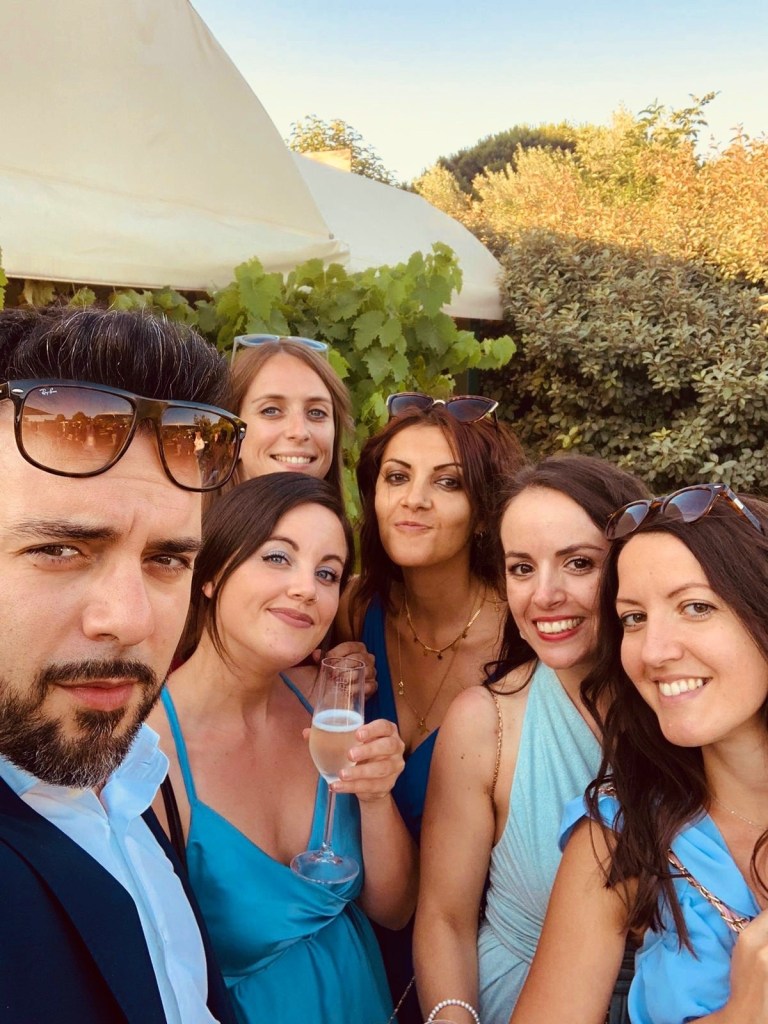 Quando gli sposi sono usciti ad attenderli fuori c’era il fiume di gente. Gli auguri i baci gli abbracci le foto. Le strette di mano. I sorrisi. Le felicitazioni. Due pullman che attendevano gli invitati e via di corsa verso i festeggiamenti. Una donna mi si è avvicinata e mi ha detto: “beata te che hai le scarpe basse”, “io sono furba” le ho risposto.