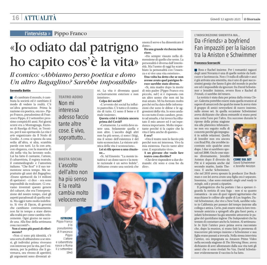 Il presidente che mi sta davanti mi chiede se aspetto qualcuno. Gli rispondo che sto aspettando Pippo Franco. Non sapevo ci fosse Pippo Franco. Me lo sono ritrovata davanti per caso un pomeriggio di fine luglio quando arrivi in un posto e ti devi ambientare. Avevo fame. Avevo appena mangiato una confezione di tacchino 🦃 in auto, comperata di corsa al supermercato, perché la persona che viaggiava con me doveva prendersi il costume e aveva già pranzato.