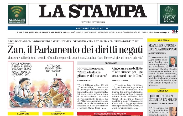 Il Gruppo Gedi tre anni fa mi lasciò a casa dalla sera alla mattina. Chi nega i diritti? La Stampa ieri ha titolato “il Parlamento dei diritti negati”. Un titolo orribile, uno slogan pesante, come se vivessimo in un Paese da roghi in piazza, dove sinceramente vedo solo antifascisti più fascisti dei fascisti stessi, cercare fascisti morti e sepolti. Accade in campagna elettorale quando non si ha niente da dire. Ma il titolo de La Stampa non mi stupisce affatto, dato che chi non si allinea alle tesi del Gruppo del politicamente corretto viene sbattuto fuori.