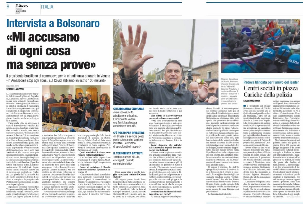 Persone che Bolsonaro non l’ha nemmeno mai visto, io almeno, scusate, una fetta di “sopressa” con il presidente del Brasile l’ho mangiata.