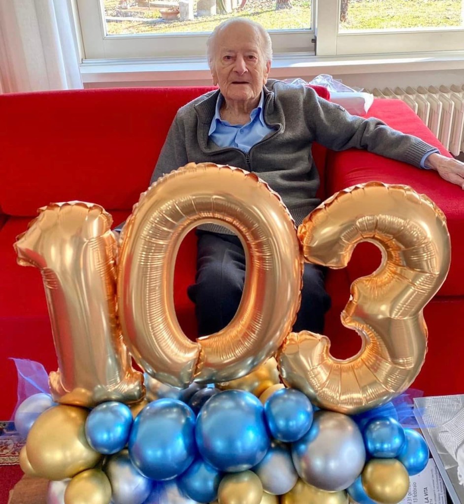 Questo uomo si chiama Giuseppe Bassi. E il 3 febbraio ha compiuto 103 anni. Il giorno prima sua nipote di anni ne ha fatti 3.