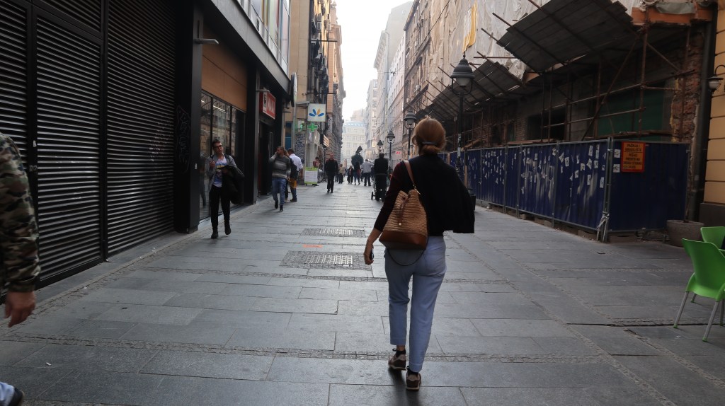 La via principale è piena zeppa di locali. Quella scomoda. Quella con i sanpietrini. Quella che se per caso c’hai i mocassini, viene giù tutto. Anche i santi. E le madonne.