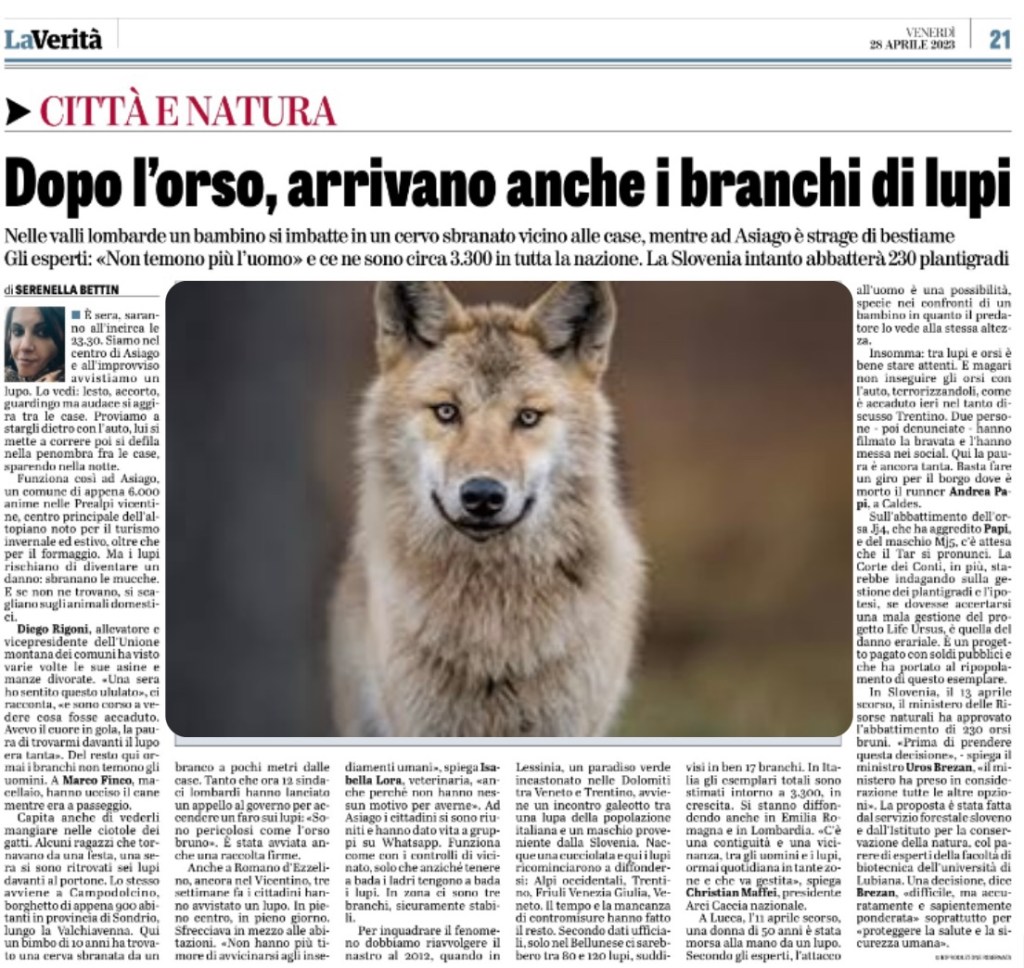 Capita anche di vederli mangiare nelle ciotole dei gatti. Alcuni ragazzi che tornavano da una festa una sera si son ritrovati 6 lupi davanti il portone di casa. Come a Campodolcino, un borghetto di appena 900 abitanti, in provincia di Sondrio, lungo la Valchiavenna. Qui un bimbo di 10 anni ha trovato una cerva sbranata da un branco di lupi a pochi metri dalle case. Tanto che ora 12 sindaci lombardi hanno lanciato un appello al governo per dire: occhio ai lupi perché questi sono “pericolosi come l’orso bruno”. È stata avviata anche una raccolta firme.
