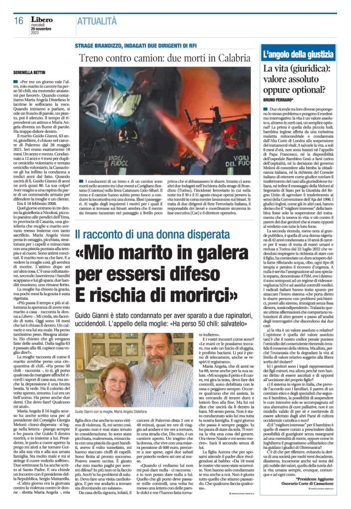 “Per me un giorno vale l’altro, mio marito in carcere ha perso 50 chili, sta morendo, aiutatemi per favore”. Quando contattiamo Maria Angela Distefano le lacrime le soffocano la voce. Quando iniziamo a parlare, si ode un fruscio di parole, un pianto, poi il silenzio. Il tempo di riprendersi un attimo e Maria Angela diventa un fiume di parole. Ha troppo dolore dentro. Il marito Guido Gianni, 63 anni, gioielliere, è chiuso nel carcere di Palermo dal 28 maggio 2021. Ieri erano esattamente 18 mesi. Un anno e mezzo. Condannato a 12 anni e 4 mesi per duplice omicidio volontario e tentato omicidio volontario, la Cassazione gli ha inflitto la condanna a tredici anni dal fatto. Quando uscirà di lì Guido Gianni di anni ne avrà quasi 80. La sua “colpa”? Aver reagito a una rapina da parte di un commando armato per difendere la moglie e un cliente. Era il 18 febbraio 2008. Quel giorno entrano in tre dentro la gioielleria a Nicolosi, piccolo paesino alle pendici dell’Etna in provincia di Catania, una gioielleria che moglie e marito avevano messo insieme con tanto sacrificio. Maria Angela viene presa in ostaggio, picchiata, strattonata per i capelli e minacciata con una pistola puntata alla tempia e al cuore. Sono attimi concitati. Il marito non sa che fare. E a vedere la moglie così, gli sembra di morire. Muore per davvero. Quando ti accadono cose simili una parte di te muore. Se ne va. L’attimo dopo sei un’altra cosa. C’è una colluttazione. Secondo la sentenza, i banditi scappano e lui spara. Partono dei colpi, due banditi muoiono e uno rimane ferito. La moglie ha chiesto la grazia, ma pochi mesi fa la grazia è stata rigettata.