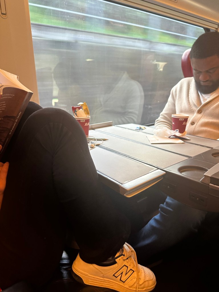 Viene a prendermi la troupe. Torno a Caserta. Poi sulla via del ritorno, in auto al cameraman squilla il telefono, il telefono è collegato con il bluetooth. È la figlia: “Pa’ posso prendere allora sto zaino?”. “Quanto costa?”. “Ottanta euro”. Il papà pensa un attimo: “Va bene. Prendilo”. Penso che anche qui lottano per arrivare a fine mese. Prendo la vita del ritorno. Scendo a Padova. Ormai è notte. Fuori piove. Vedo la gente dormire all’addiaccio in stazione. Metto su le cuffiette. Sul mio Spotify: “Dancing with tears in my eyes”.