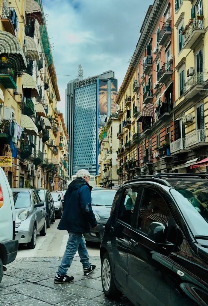 Arrivi a Napoli centrale e una volta uscita dalla stazione, non fai nemmeno in tempo a rendertene conto, che vieni catapultato in questa irresistibile e vulcanica energia. Arrivando hai anche visto il Vesuvio. Quella montagna che da piccola ti dicevano che eruttava lava. Uscita dalla stazione poi ci sta un palazzo che ha i vestiti ad asciugare appesi fuori. Sono tutti colorati, messi alla rinfusa. Spuntano jeans appesi per le caviglie, appesi per il cavallo, maglioni girati, sottosopra, appesi per le maniche, per il collo, lenzuola giganti, asciugamani, tovaglie a cuori, a fiori, a quadri. Sotto ci sono le auto parcheggiate messe di traverso che si fondono e si confondono con le auto in fila che aspettano. Quelle in divieto di sosta. Quelle in colonna. Quelle in seconda fila. L’ingorgo. I clacson. La gente che urla. Che vocifera. Adoro questa anarchia. Questa baraonda. I trolley che trottereggiano come cavalli da corsa all’ippodromo. Il venditore di frutta che spunta in mezzo alla strada. I motorini che ti sfrecciano accanto. Uno, due, tre. In fila, di traverso. La troupe mi aspetta in mezzo a quella nuvola di taxi bianchi che se a Milano non ci sono, qui ne hanno a bizzeffe. “Abbiamo un furgone grigio”, mi dicono. Ma io. Io non ci sento e continuo a meravigliarmi e a meravigliarmi ancora di quel dannato caos e di quella sfacciata bellezza. Il vociare dei vicoli. Le voci sguaiate del centro. La libertà. Il caos. Qui hanno le loro regole. In un bar c’è scritto: “Che fretta c’è, fatti un caffè”. E infatti. Al bar incontro una ragazza. I nostri sguardi si incrociano. E subito cominciamo a parlare. Lei mi racconta che l’indomani avrebbe avuto un volo per Manchester. Che deve andare a trovare un’amica. Che lei vive a Lecce, ma Napoli è il suo posto del cuore. “Ah dai, no io sono qui per lavoro”. “Ma che lavoro fai?”. “La giornalista”. “Oddio e che sei venuta a fare qui dal Nord?”.