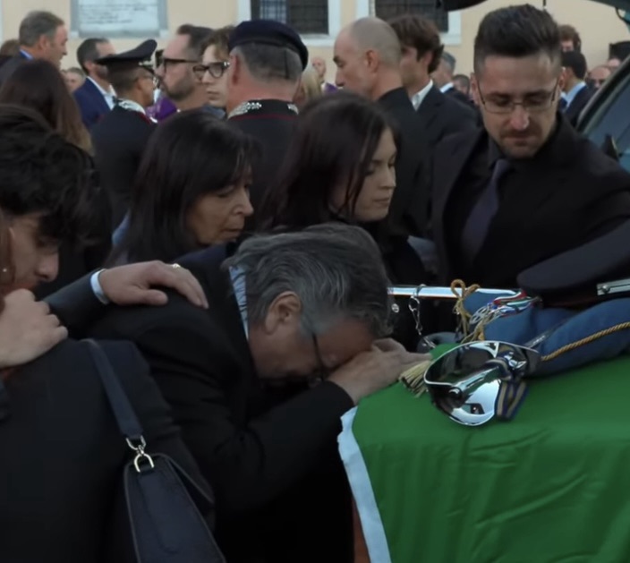 Seduto sulla prima panca della basilica di Santa Giustina a Padova, la stessa che ha dato l’ultimo saluto a Giulia Cecchettin, se ne stava tutto indifeso e raggomitolato su se stesso, con gli occhi smarriti, e non riusciva a capacitarsi di come in quella bara avvolta dal tricolore, con sopra quel basco bordato di cremisi, potesse esserci il figlio. La chierichetta poi. La chierichetta era di uno splendore immenso. Capelli lunghi dorati, teneva in mano quel turibolo carico d’incenso che pareva stesse suonando uno strumento. E la melodia riecheggiava forte nelle nostre orecchie. Ho visto le mascelle serrate. I volti afflitti e compunti. Rigati da un pianto che i militari dell’Arma faticavano a trattenere. E quel nodo alla gola che penava a scendere. Dio che pena. Alla cerimonia erano presenti anche i carabinieri feriti durante l’esplosione. Uno di loro è in sedia a rotelle. Un altro ha il volto coperto da una garza.