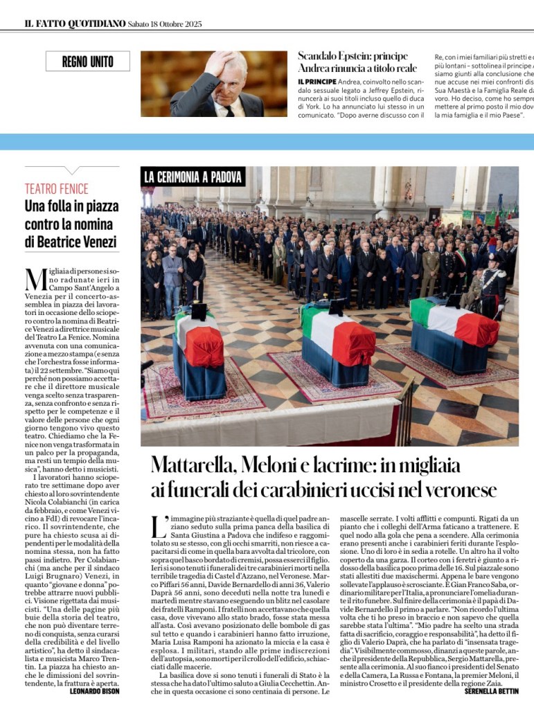 Il Fatto Quotidiano 🗞️ del 18 ottobre 2025